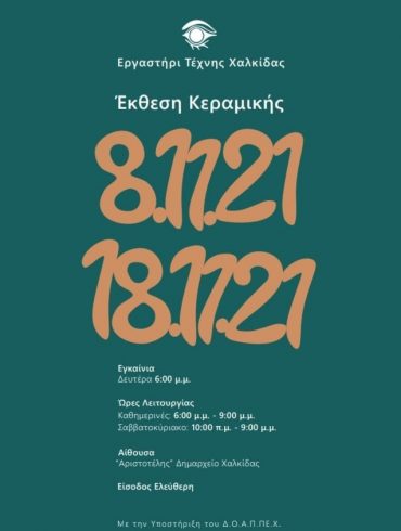 Το τμήμα Κεραμικής του Εργαστηρίου Τέχνης Χαλκίδας θα εκθέσει στους φιλότεχνους της πόλης μας, τα κεραμικά του δημιουργήματα. Πέρασαν πέντε... Read More